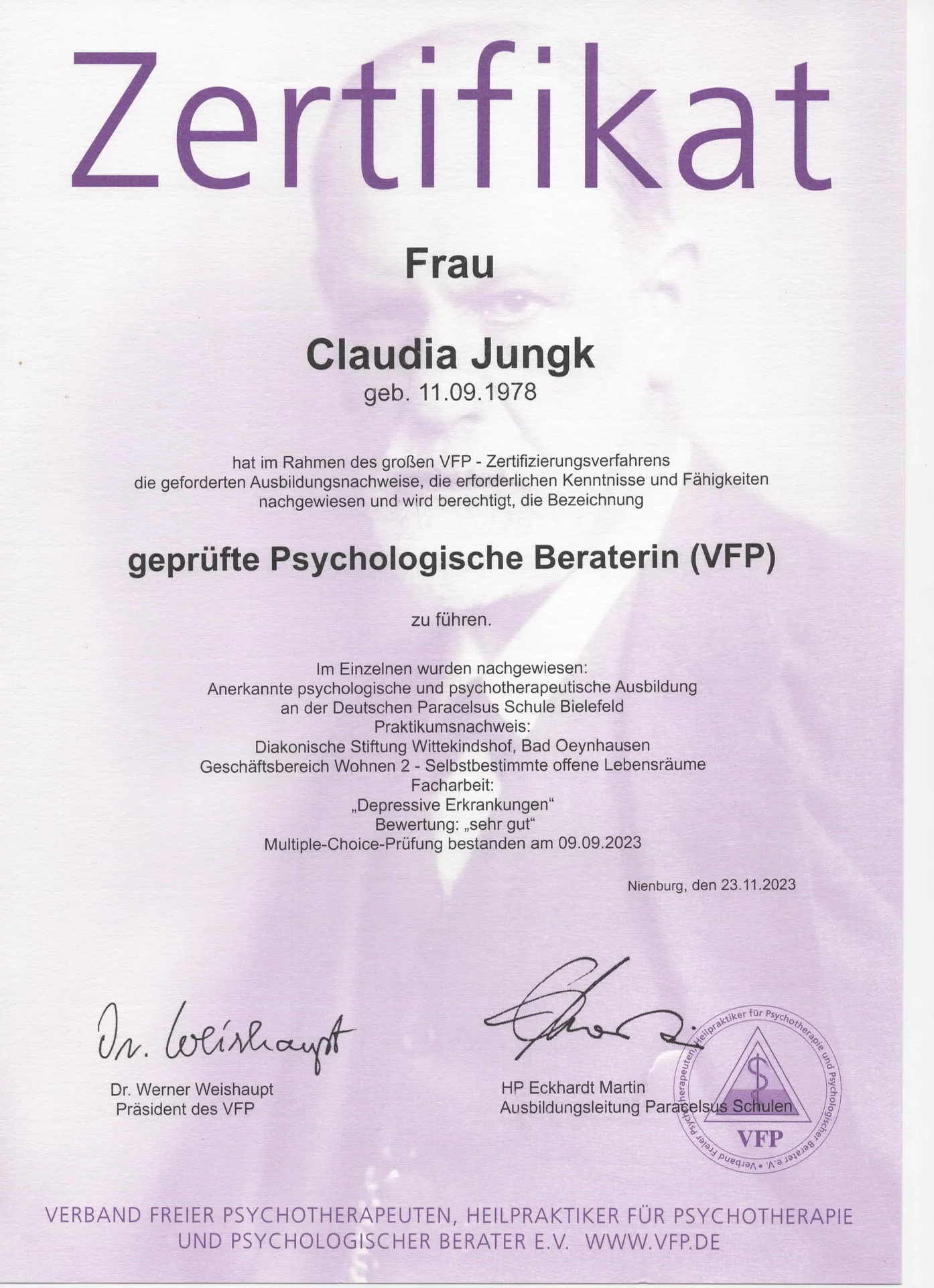 Beraterin beim Verband freier Psychotherapeuten ( VFP)